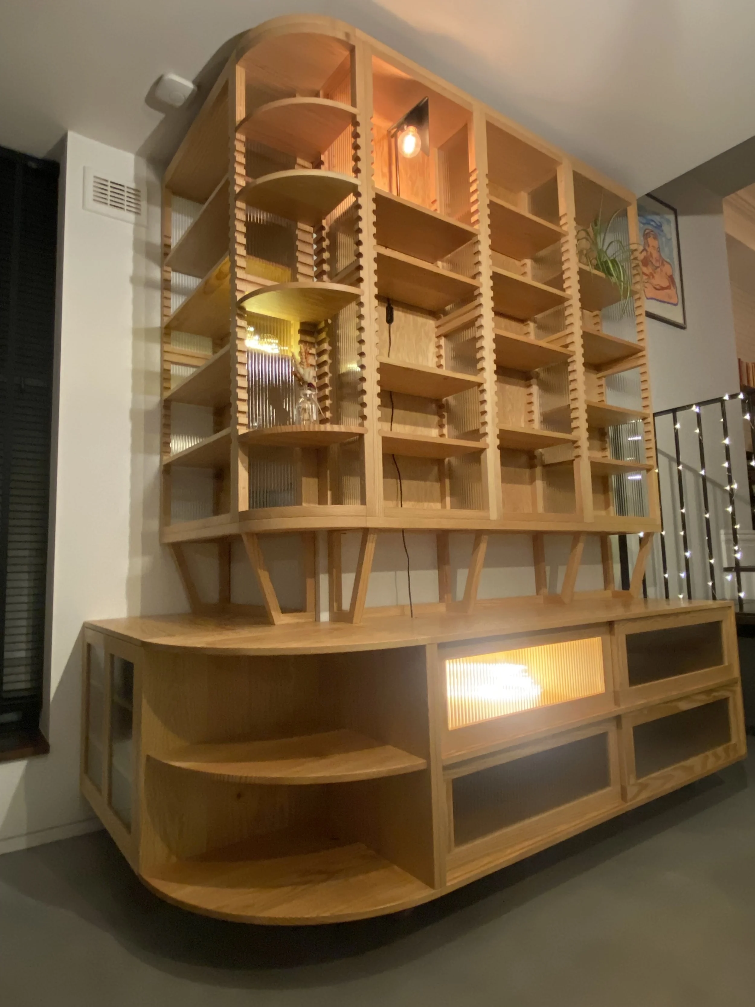 I designed and made this bespoke set of shelves and storage units for some lovely clients. This piece was a labour of love and a reflection of what I strive for in every design: form following function and some fun details.